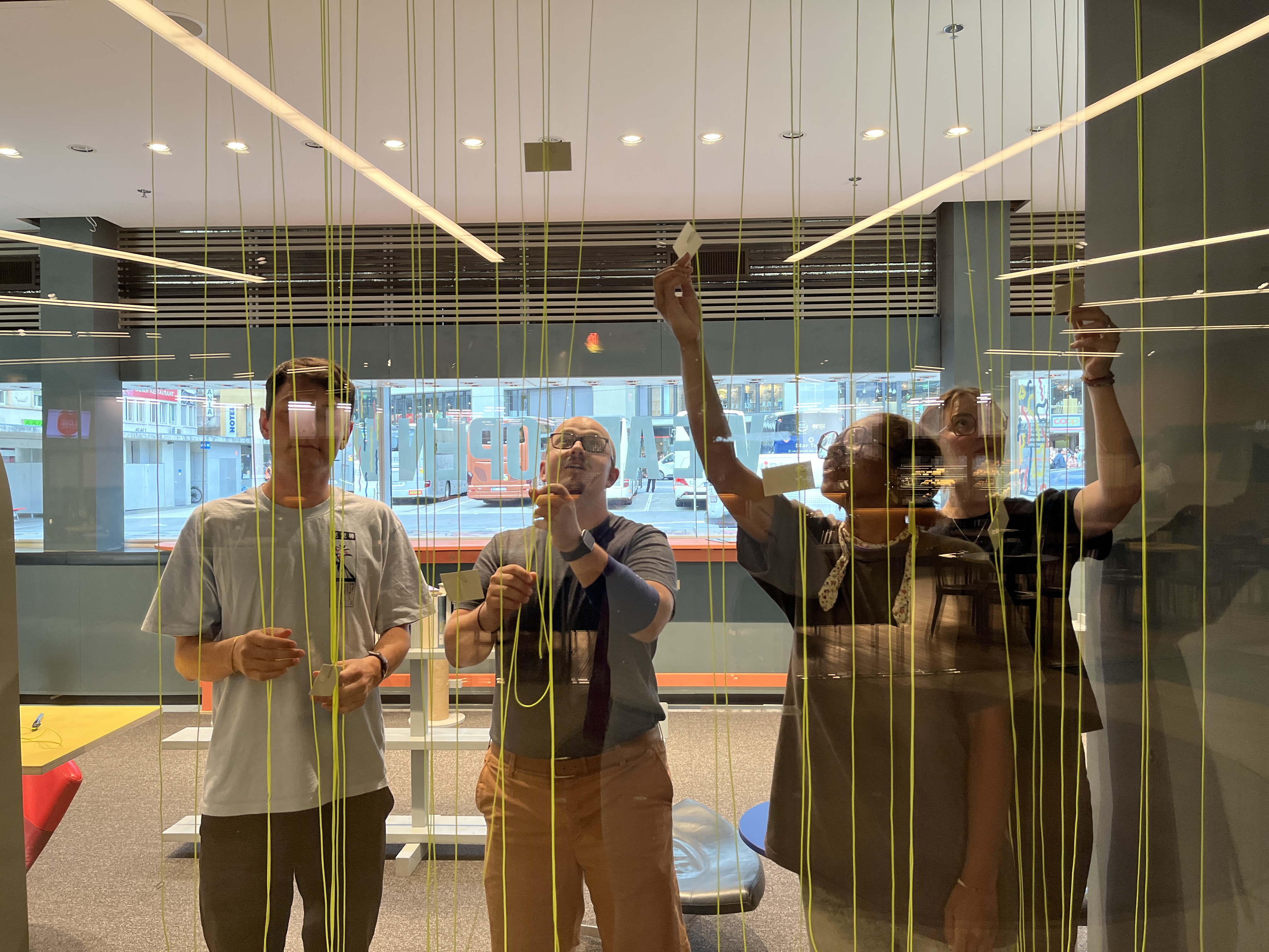 Theoretisch gut fundiert: Besuchende vor dem Video-Interview mit Dr. Doris Baumann von der Universität Zürich (3.3 MB)