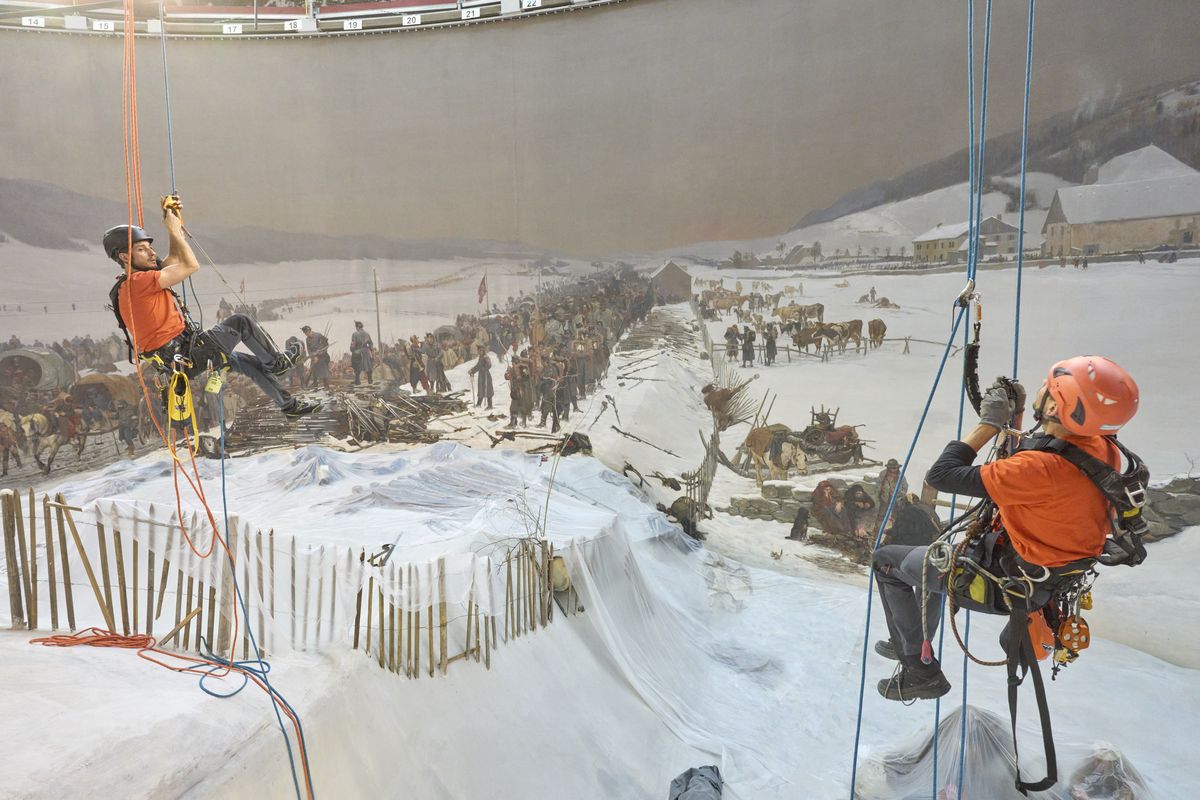 Mit dem Ersatz des sogenannten «Optischen Apparats», der Aussichtsplattform sowie dem Beleuchtungssystem realisierte die Stiftung Bourbaki Panorama Luzern zu Beginn des Jahres 2024 das grösste Restaurierungsprojekt seit der Totalsanierung von Rundbild und Panoramagebäude vor knapp 30 Jahren. Der Umbau wurde zum Schutz des Gemäldes grösstenteils von Industriekletternden vorgenommen. Aus logistischen Gründen wie zugunsten der Sicherheit war eine Schliessung des Museums für sechs Wochen, vom 8. Januar bis zum 16. Februar, unumgänglich. Mit der Sanierung reagierte die Stiftung auf sichtbare Abnutzungs- und Alterserscheinungen einzelner Komponenten, welche in drastischem Kontrast zur hohen Qualität der Malerei standen.