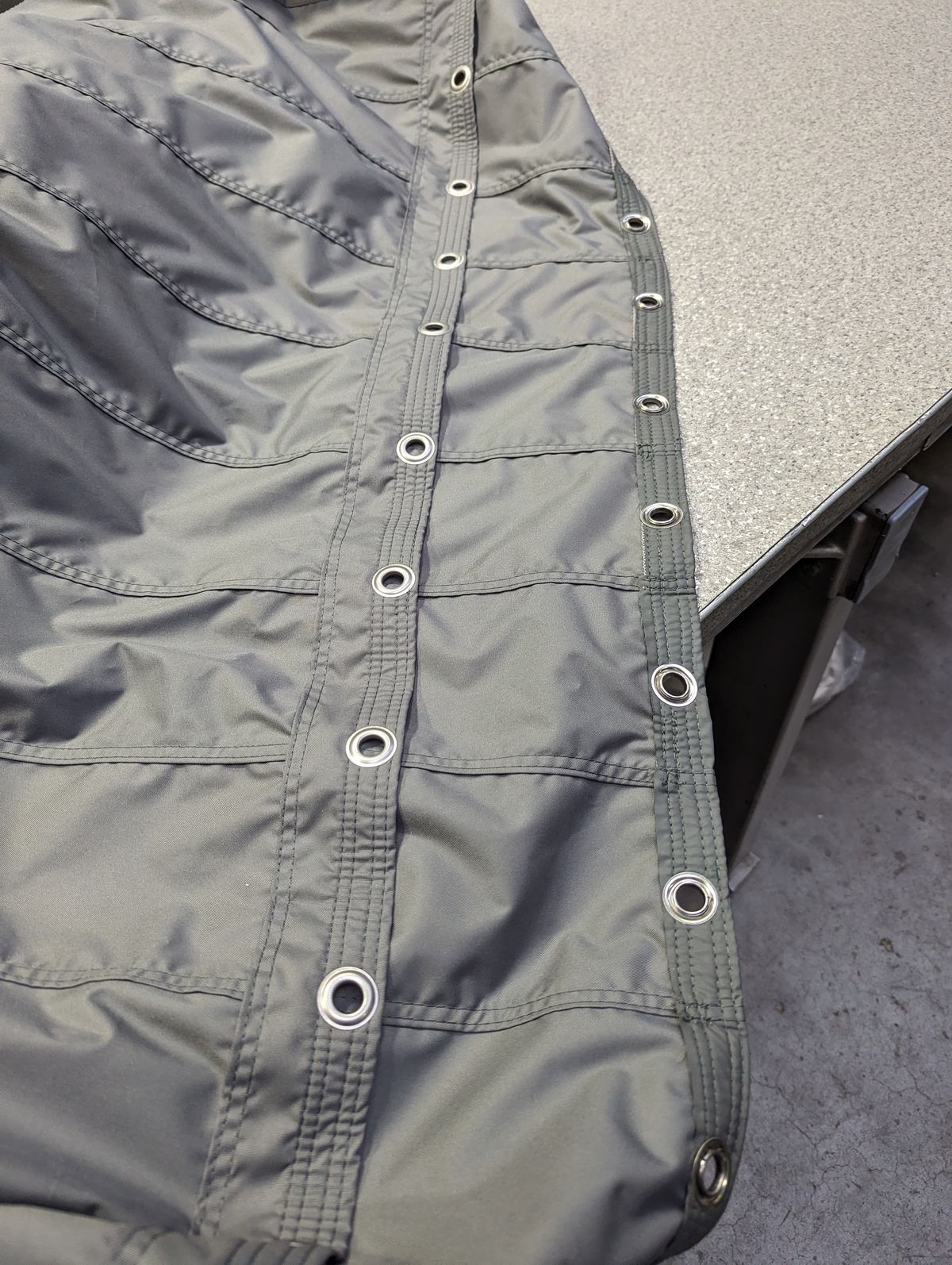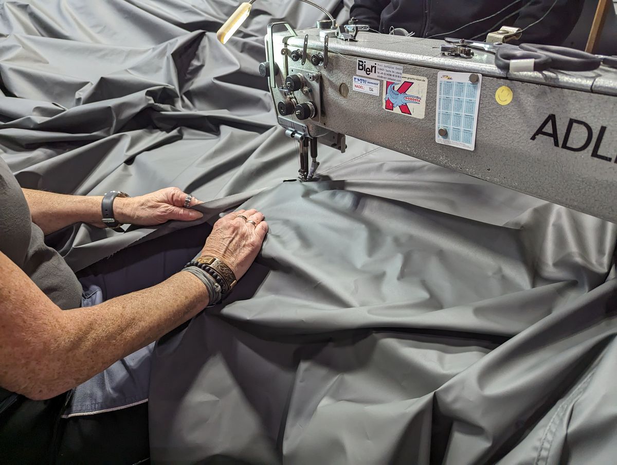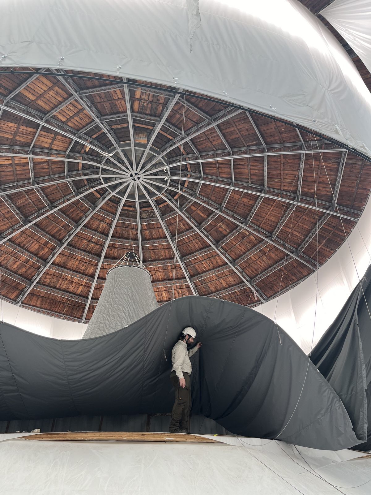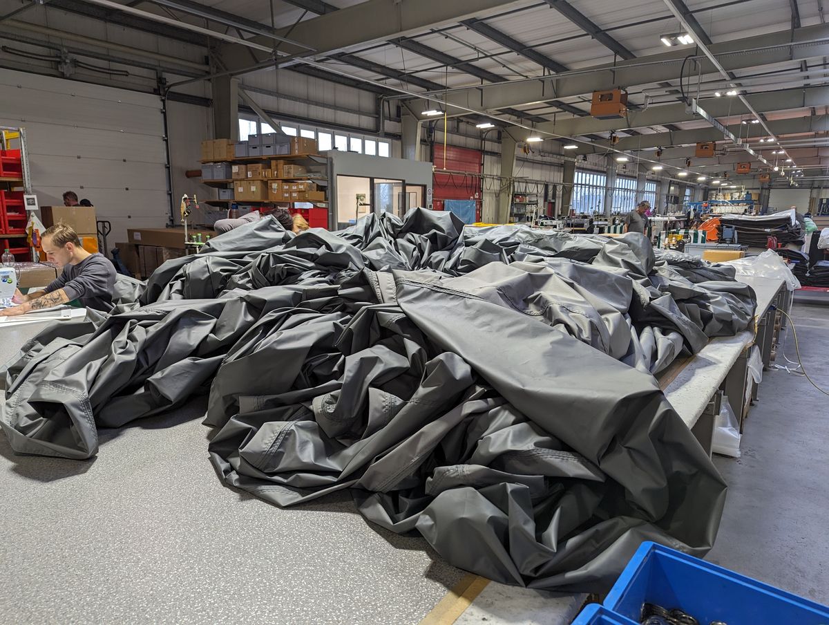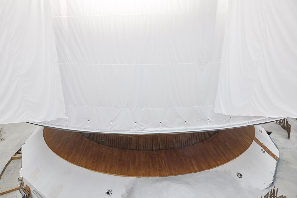 - Insgesamt werden 1600 Quadratmeter Stoff mit einem Gesamtgewicht von 200 Kilogramm neu aufgespannt.
