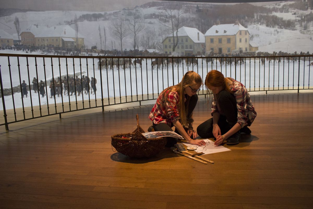 Im Rahmen des Parcours finden zwei Kinderführungen vor dem berühmten Rundbild Bourbaki Panorama statt:
