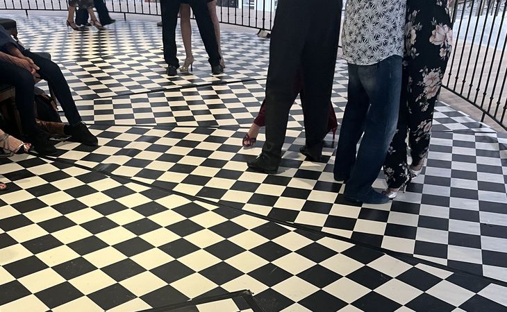 Erlebe den Tango in einzigartiger Atmosphäre: Tanze – umarmt vom Gegenüber, umgeben von eindrucksvoller Malerei und getragen von den Klängen melancholischer Tangomusik!
