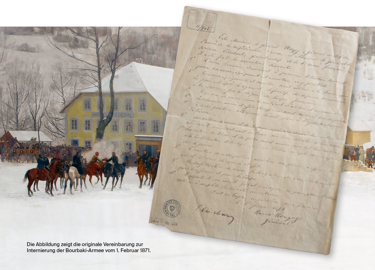 1871 werden 87 000 Männer der Bourbaki-Armee in die Schweiz interniert. Viele Schweizerinnen und Schweizer kümmerten sich freiwillig um die Soldaten und linderten viel Leid.